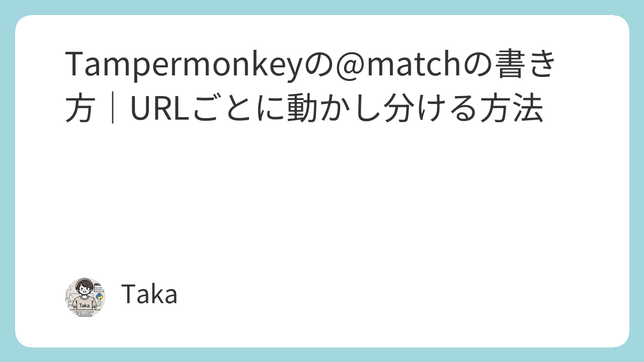 よくあるのは、「スクリプト本体は正しいのに @match だけがズレていて動かない」パターンです。Tampermonkeyに慣れるほど、@match の精度が作業効率に直結します。